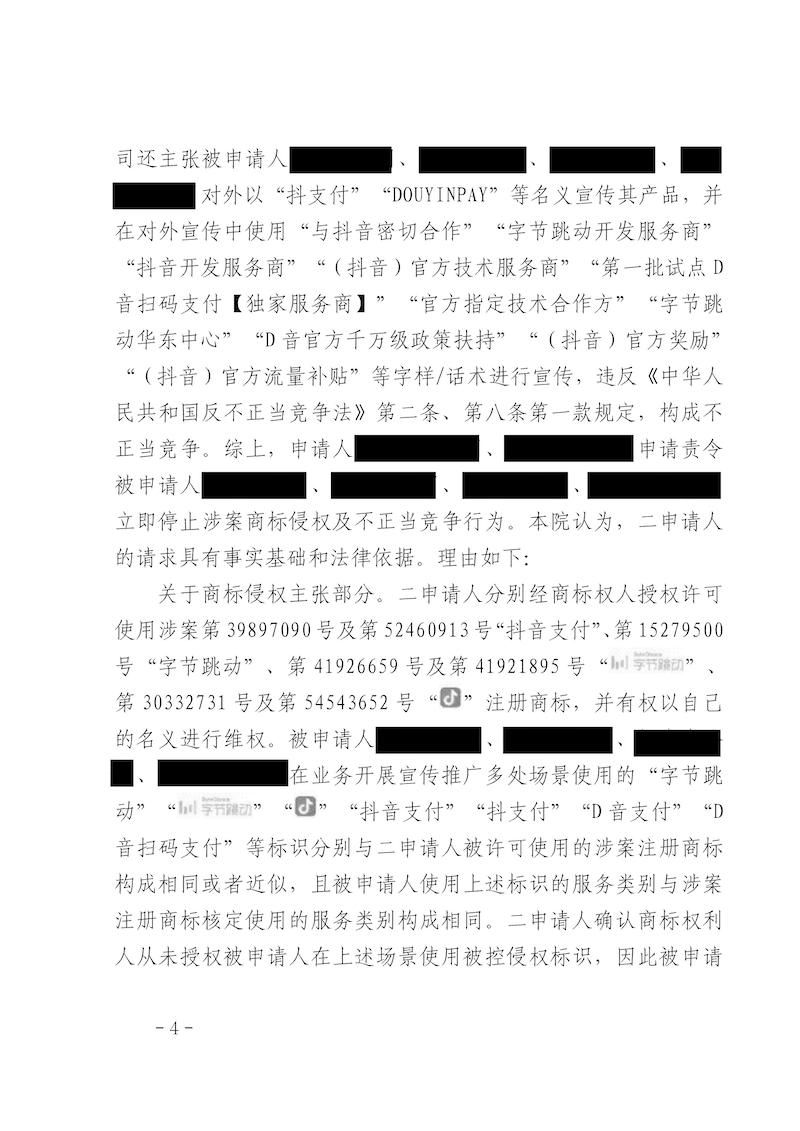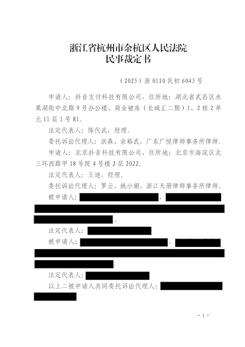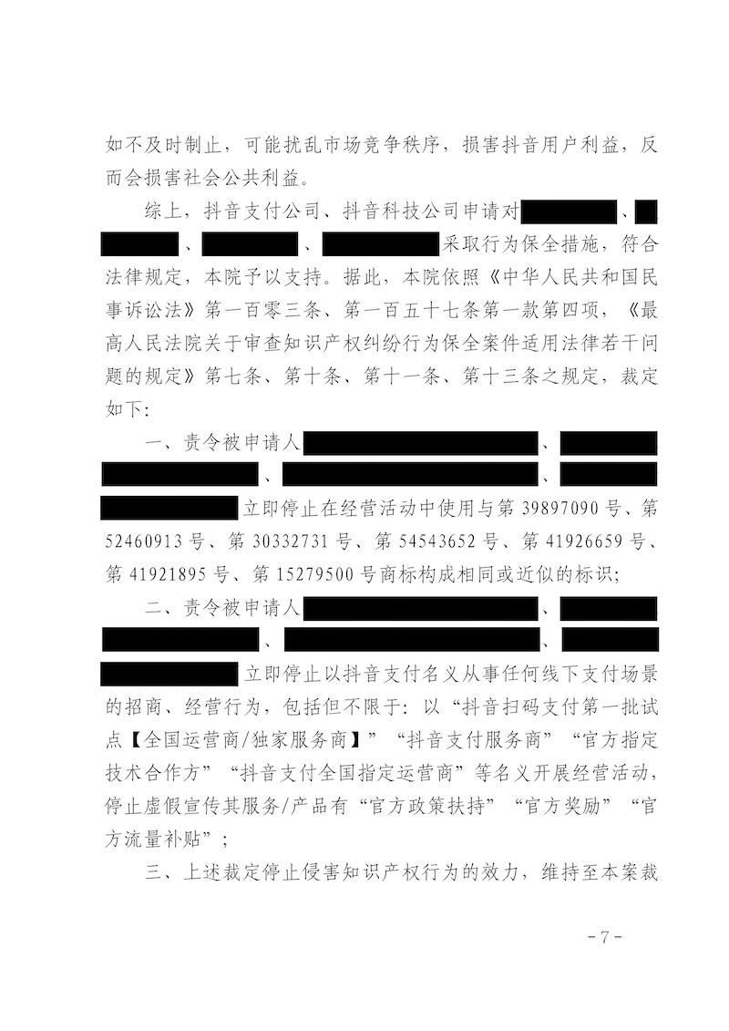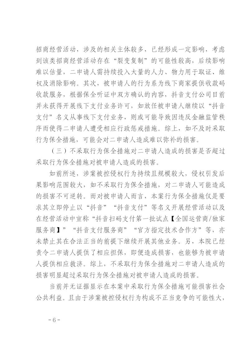 业绩:抖音支付诉中行为保全《民事裁定书》